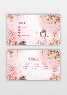 粉色可爱风格美容名片美容院名片