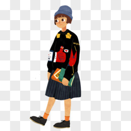 手绘卡通坐在小板凳上的小女孩免抠元素