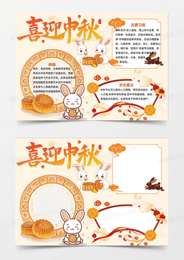 黄色国风2025喜迎中秋可爱兔子插画圆形月饼手抄报