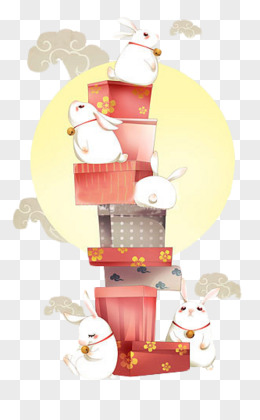 手绘卡通中秋节玉兔月饼小清新插画元素