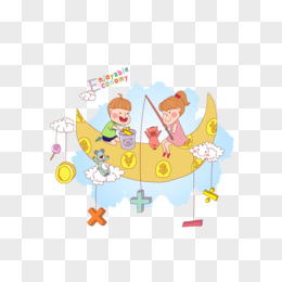 卡通月亮上的小孩