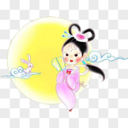 中秋节神话传说人物嫦娥奔月玉兔免抠元素