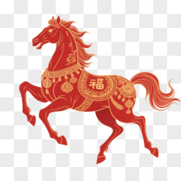 卡通一匹红色奔跑的马身上有着福字花纹免抠元素
