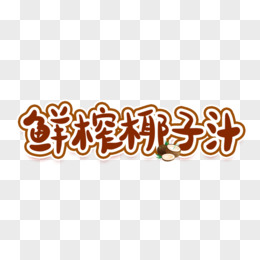 鲜榨椰子汁手写可爱艺术字