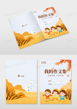 橙色秋季卡通我的作文集书籍封面课本封面画册封面书本封面