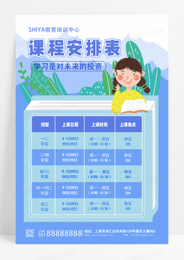 紫色卡通培训中心学校课程安排表课程表海报设计