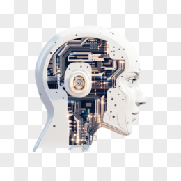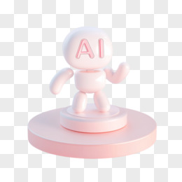 3D粉色圆形平台上的机器人脸部是AI字母免抠元素