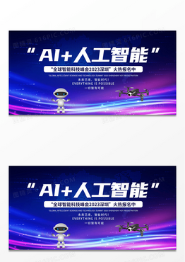 简约人工智能科技感AI人工智能科技峰会智能科技蓝色科技感会议背景展板
