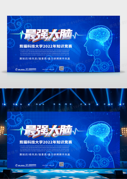 大气蓝色科技感最强大脑知识竞赛宣传展板设计