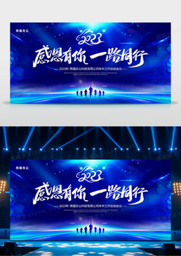 2023年会蓝色科技感光效年终工作总结感谢有你一路同行舞台背景展板