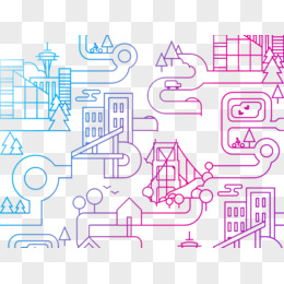 一组手绘渐变蓝粉渐变科技线条套图合集元素四