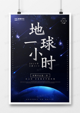 蓝色星空科技地球一小时公益海报