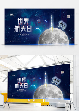 简约蓝色科技感世界航天日宣传展板