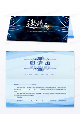 元旦邀请函2024酷炫蓝色科技年会邀请函花光效城市高端大气年终