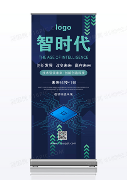 蓝色科技箭头芯片科技网络互联网科技展架易拉宝