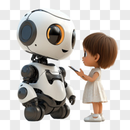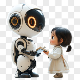 平面插画一个白色机器人拿着屏幕站在屏幕前讲课下面坐着一排人免抠元素