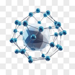 3D插画蓝色电子组成的网包裹原子核免抠元素