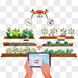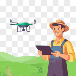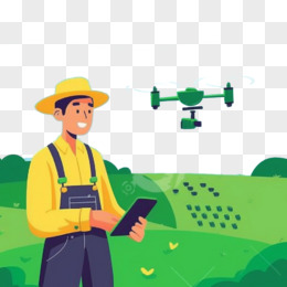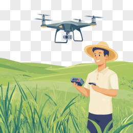 插画戴草帽的农民在田野旁操控无人机免抠元素
