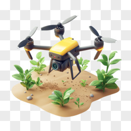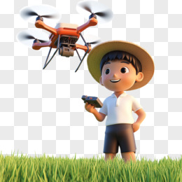 3D插画戴草帽的农民在田野旁操控无人机免抠元素
