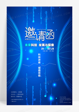 简约蓝色大气科技主题讲座邀请函海报