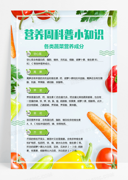 绿色清新卡通蔬菜营养科普小知识营养成分表海报