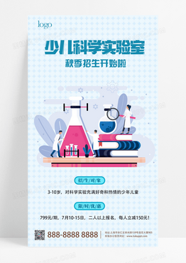 简约蓝色卡通少儿科学实验招生海报