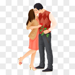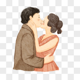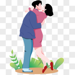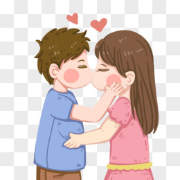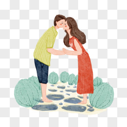 手绘卡通情侣人物接吻免抠素材