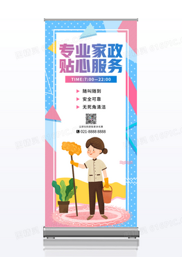 线条插画家庭服务家政展架