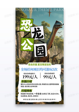 简约插画暑期暑假恐龙主题公园旅行旅游宣传海报