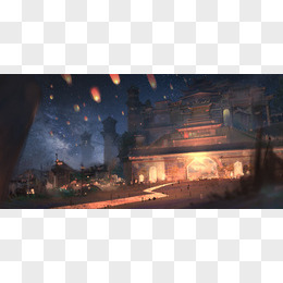 手绘矢量剪纸风兔子放孔明灯剪纸元素