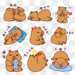 一组手绘水豚表情包免抠元素合集