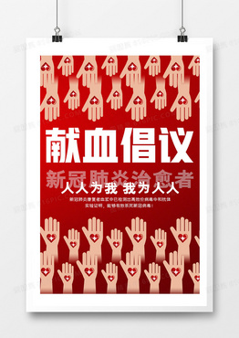 简约红色新冠肺炎治愈者无偿献血新冠肺炎康复者献血海报