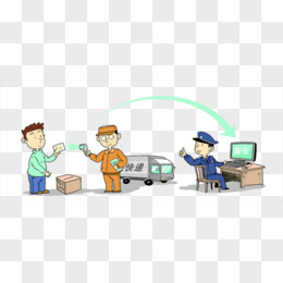 卡通手绘快递运输流水线素材