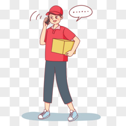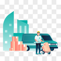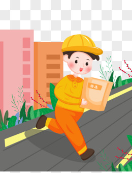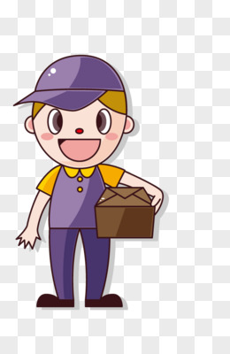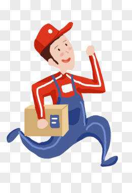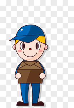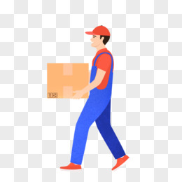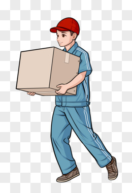 卡通手绘快递员搬运运输纸箱货物免抠元素