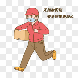 手绘卡通快递员无接触配送元素