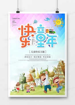 玩彩虹滑梯的快乐男孩人物手绘插画