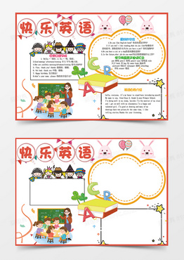 卡通快乐英语小报中英文小学生英语电子手抄报模板英语口语练习