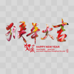 毛笔字风格金鸡送福新年快乐艺术字设计
