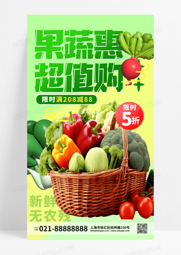 一筐绿色简约果蔬惠超值购食品类生鲜水果通用电商海报