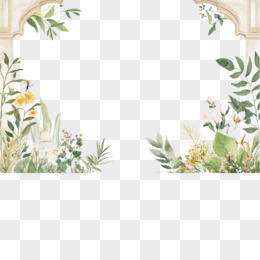 插画风格植物半包边框免抠元素