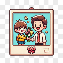 母亲节儿子和妈妈开心的照片相框免抠元素