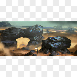 手绘卡通挖煤场景素材