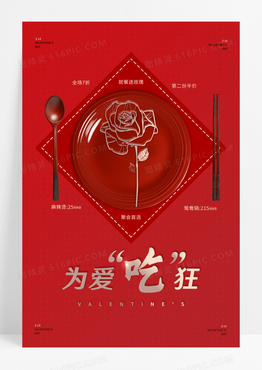 红色喜庆为爱吃狂中国传统节日元宵情人节海报