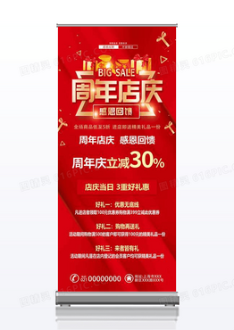 红色大气周年店庆狂欢购促销展架易拉宝喜庆商场店庆周年庆促销展架易拉宝