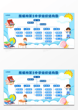 蓝色卡通组织结构框架图中小学宣传栏海报人员组织架构图