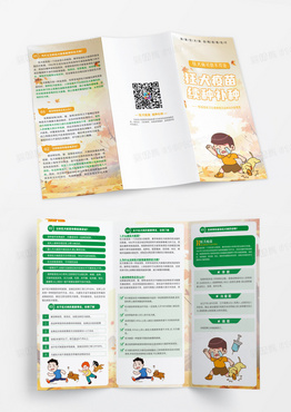 绿色手绘狂犬疫苗续种补种接种疫苗三折页设计