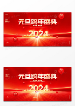 红金炫酷2024龙年元旦跨年盛典元旦展板