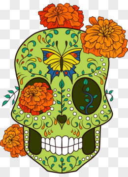 装饰花和绿色骷髅头