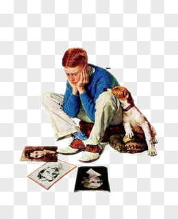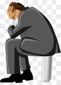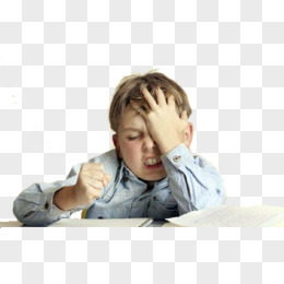 卡通手绘小男孩烦恼坐在地上免抠元素