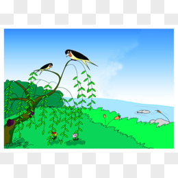 手绘卡通小孩子们抓蝌蚪场景免抠素材